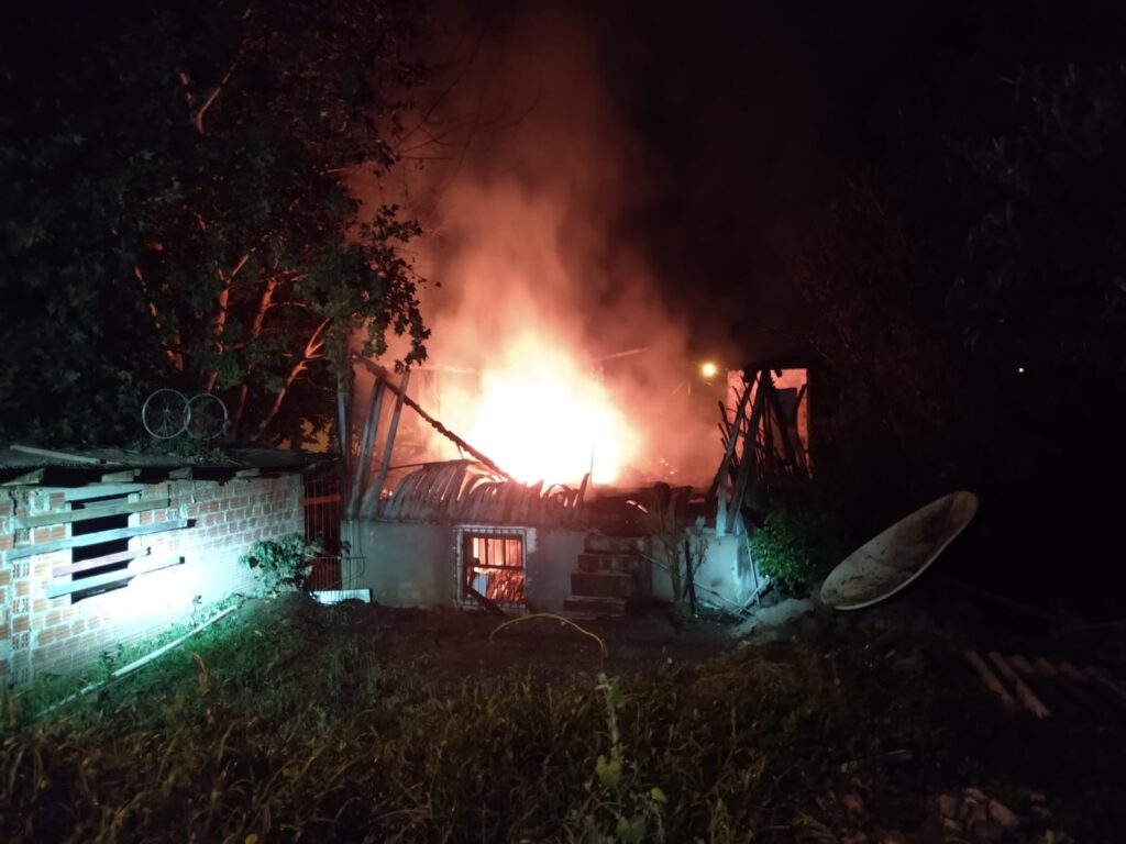 Casa é destruída pelo fogo no Bairro União