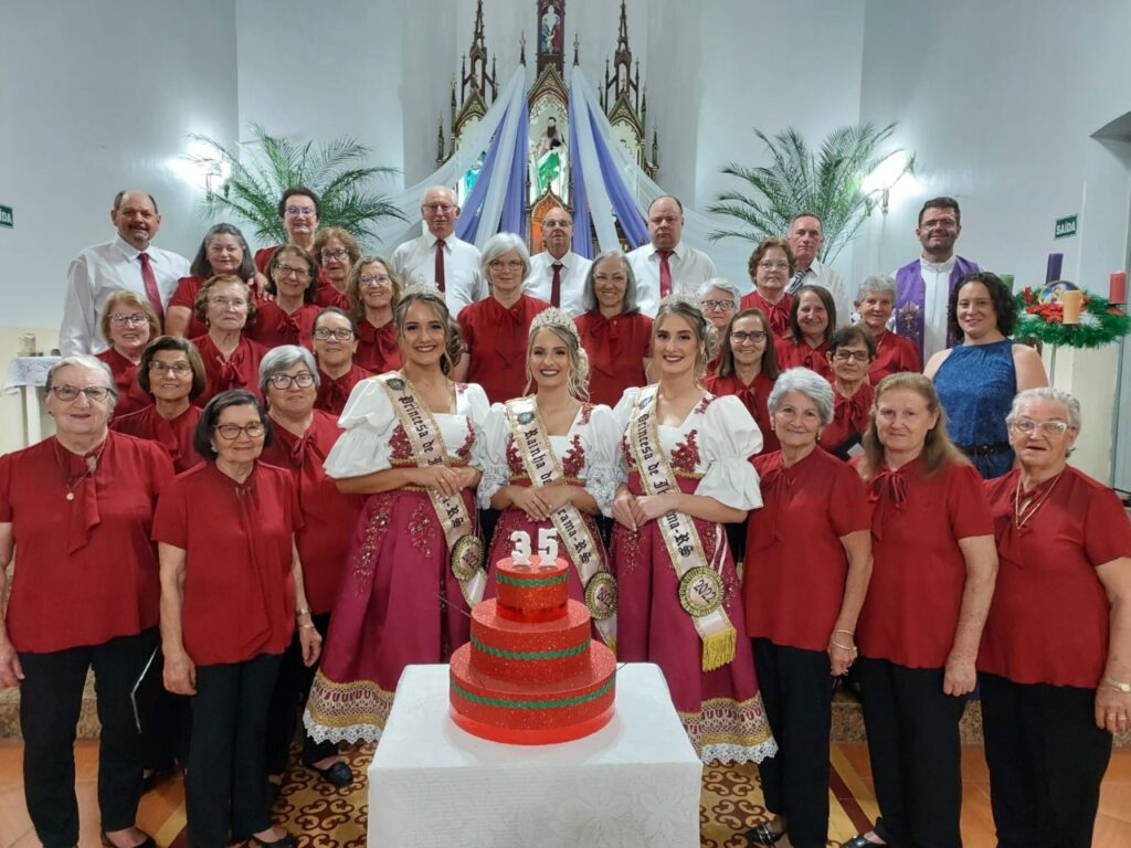 A celebração, presidida pelo Padre Matheus Venturini, contou com a presença da corte de soberanas, secretários municipais, vereadores e apresentação do Coral Municipal Luciano Pavarotti