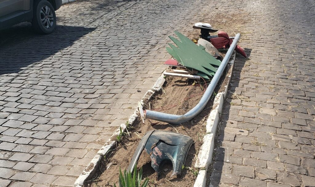 Luminárias de canteiro são destruídas por veículo em Sobradinho