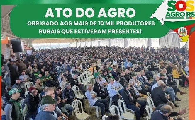 A manifestação tem o objetivo de pressionar o governo federal a atender reivindicações de produtores rurais gaúchos, endividados depois de anos de estiagem e das chuvas e enchentes de maio.