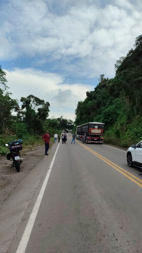 ERS-400 é bloqueada para remoção de caminhão acidentado em Candelária