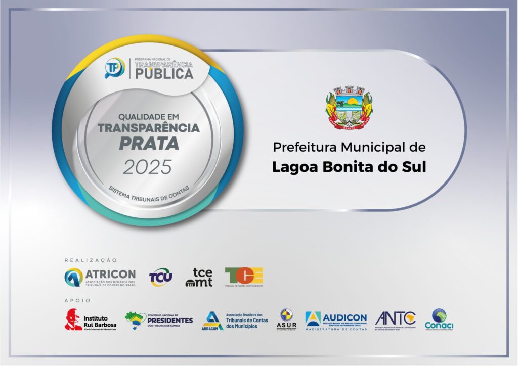 Prefeitura de Lagoa Bonita do Sul recebe Selo Prata em Transparência 2025