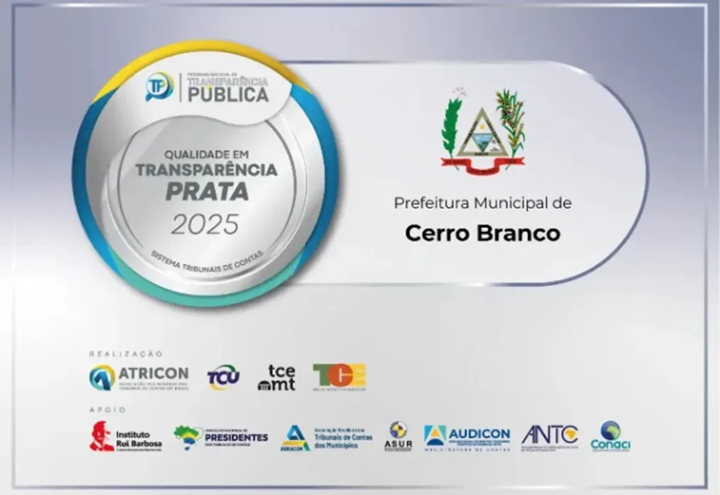 Cerro Branco recebe Selo Prata de Transparência Pública 2025