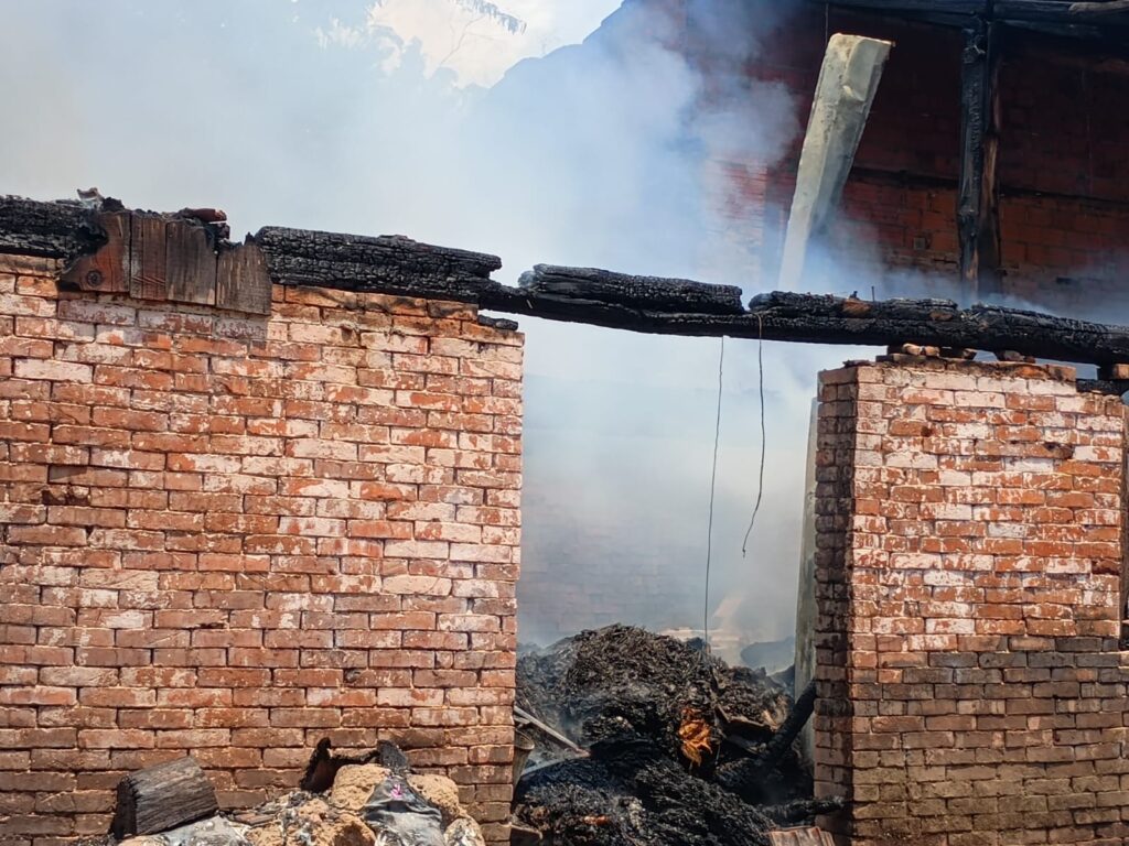 Duas viaturas foram utilizadas no atendimento, com o emprego de cerca de 4.500 litros de água.
