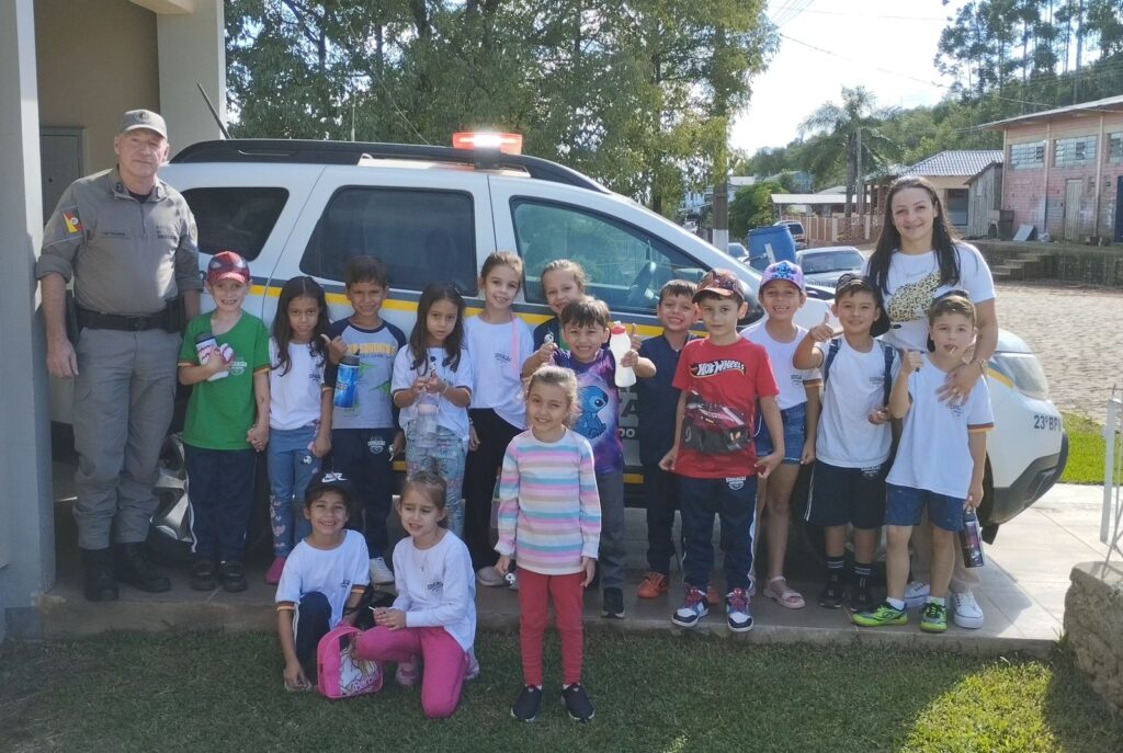 Brigada Militar de Lagoão recebe alunos em ação de policiamento comunitário
