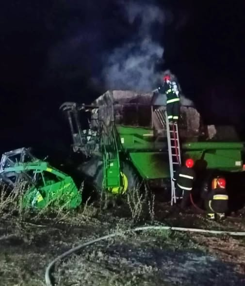 Máquina agrícola é atingida por incêndio no interior de Arroio do Tigre
