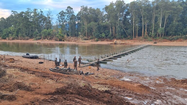 Segundo o coordenador do gabinete de crise de Candelária, Flávio Karnopp, equipes da Prefeitura e da concessionária atuam para melhorar a travessia dos pedestres entre a passarela do Exército e a estrada de Linha do Rio, na VRS-858. Apesar do problema, moradores já podem cruzar a ponte sobre as águas do Rio Pardo. A estrutura do Exército é composta por 34 barcos em linha reta, entre a Prainha e a Linha do Rio. Uma retroescavadeira também executou o serviço de melhorias no barranco do curso de água. A Prefeitura disponibilizou horários para transporte gratuito até o local, em ambos os lados, diariamente.