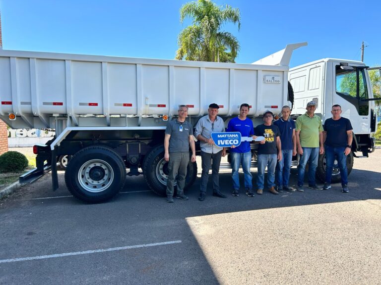 A Prefeitura de Passa Sete recebeu ontem, um novo caminhão caçamba que será incorporado à frota municipal. O veículo foi adquirido por meio de pregão eletrônico, totalizando o valor de R$ 532.150,00, recursos provenientes do orçamento próprio do município.