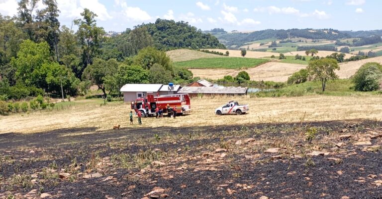 Os Bombeiros Voluntários de Arroio do Tigre foram acionados na manhã da última terça-feira (25), para apagar um incêndio em uma lavoura na localidade da Linha São José, interior do município. Segundo relatos, o fogo começou em uma área com palha da colheita de aveia à beira da estrada geral, provavelmente provocado pelo descarte de um toco de cigarro.