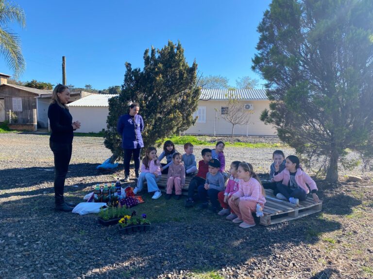 Como forma de incentivo à preservação do meio ambiente, cada criança recebeu uma muda de flor para plantar em casa — gesto simbólico que reforça a importância do cuidado, da paciência e do compromisso com a natureza desde a infância.