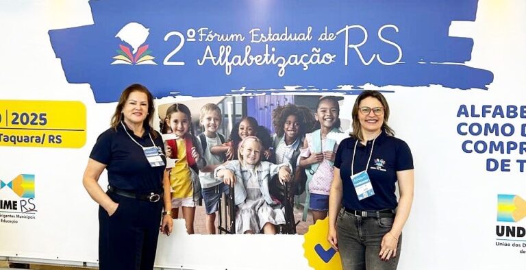 A secretária municipal da Educação, Vilma Teloken, e a coordenadora Raquel Fiuza Neuenfeldt participaram, nessa segunda-feira (20), do 2º Fórum Estadual de Alfabetização do Rio Grande do Sul. O evento foi realizado nas dependências da FACCAT, em Taquara, e reuniu educadores, gestores e especialistas de várias regiões do Estado para discutir estratégias e práticas voltadas à alfabetização, tema fundamental para o fortalecimento da educação gaúcha.
