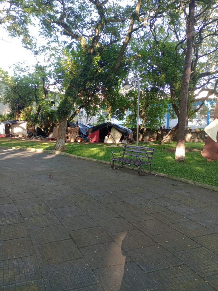 A equipe de reportagem das rádios Sobradinho e Jacuí recebeu fotos e vídeos de seus ouvintes, registrando a situação precária do local ocupado por pessoas que alegam serem índios que estão apenas de passagem pela cidade. Esses ocupantes também utilizam os pequenos poços do Arroio Carijinho para se banharem. A reportagem entrou em contato com a Secretaria de Assistência Social. A pasta informou estar se inteirando da situação. Crianças em meio a muito lixo também estão sendo vistas no local.