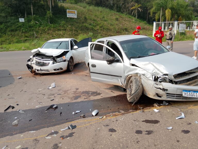 Um acidente de trânsito envolvendo dois veículos deixou várias pessoas feridas na tarde desse domingo (22), em Sobradinho. De acordo com a Polícia Rodoviária Estadual, o sinistro ocorreu na ERS-400, quando uma condutora de 59 anos, que dirigia um GM Corsa Sedan, não respeitou a sinalização de “PARE”, e acabou cortando a frente de um Chevrolet Cruze, conduzido por um homem de 34 anos. Ambos os veículos tem placas de Santa Cruz.