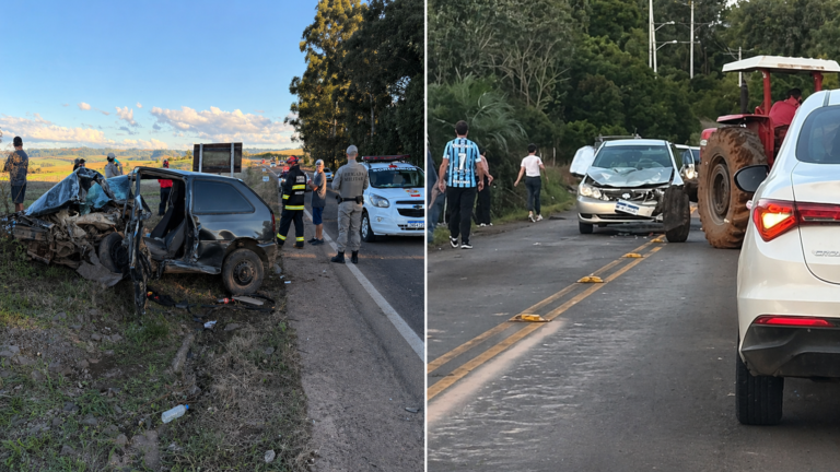 Dois acidentes com lesões corporais foram registrados na tarde desse domingo (26), mobilizando equipes de resgate e a Polícia Rodoviária na região. O primeiro caso ocorreu por volta das 17h, na RSC-481, km 93, na localidade de Vila Progresso, em Arroio do Tigre. A colisão frontal envolveu uma caminhonete Ford Ranger, conduzida por um homem de 72 anos, e um automóvel Gol, dirigido por um jovem de 25 anos. Com o impacto, uma das vítimas ficou presa às ferragens, sendo necessário o trabalho de desencarceramento por parte dos Bombeiros Voluntários de Arroio do Tigre.