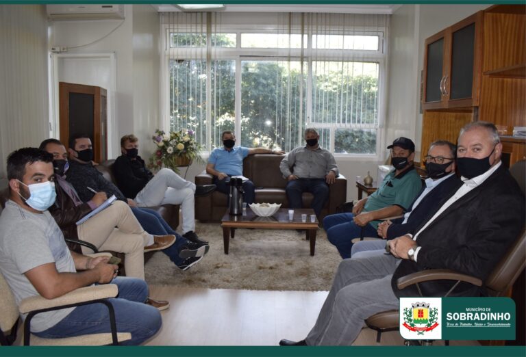 O prefeito de Sobradinho Armando Mayerhofer; o vice Ivan Trevisan; o secretário de Industria, Comércio e Serviços, Darlan Kittel, e proprietários de novos loteamentos da cidade estiveram reunidos com o Gestor da Unidade da CORSAN de Sobradinho, Nilton Mattana, e com o Superintendente Regional da CORSAN, José Roberto Epstein.