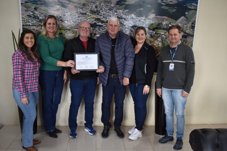 O prefeito Marciano Ravanello recebeu Vanderlei Peiter e sua esposa Marcia Hackenhaar Peiter, proprietários da Agroindústria APmel, para a entrega do Título de do Serviço de Inspeção Municipal (SIM). A Agroindústria é especializada na extração e envase de mel, com produção própria de suas 420 colmeias. A formalização da agroindústria garante a qualidade e a segurança do mel comercializado.
