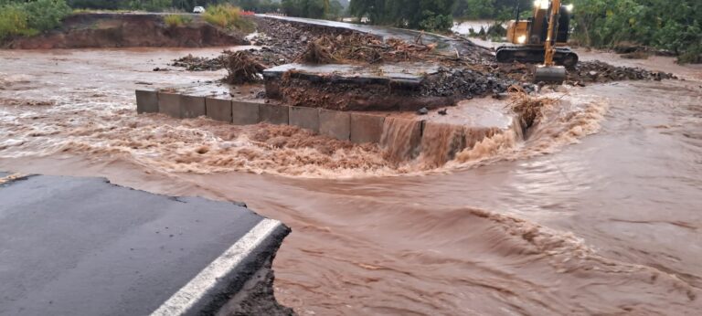 O trânsito segue bloqueado na RSC 287 no KM 167, entre Novo Cabrais e Paraíso do Sul. Naquele ponto, a água do Arroio Barriga encobriu a pista do desvio provisório construído após a enchente do ano passado, e na manhã desta quarta-feira, 18, rompeu totalmente a pista junto a galeria. De acordo com a Polícia Rodoviária de Novo Cabrais, a concessionária Rota de Santa Maria está trabalhando no local com a colação de cargas de pedras. Ainda não há previsão para a liberação do trânsito no local. O trânsito pelos desvios pelas localidades de Aterrado e Cortado também está bloqueado.
