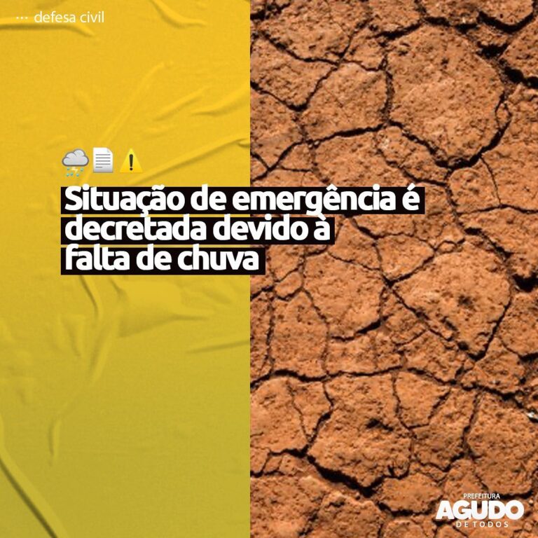 A Prefeitura de Agudo declarou Situação de Emergência no Município devido à estiagem causada pela ausência de chuva dos últimos dias. A medida está disposta no Decreto Municipal nº 194/2021, publicado na última segunda-feira (20). Conforme o Decreto, a Situação de Emergência se faz necessária em razão da falta de chuva expressiva nos últimos meses, fato este que comprometerá as safras das culturas de sequeiro do município, bem como o abastecimento de água na área rural.