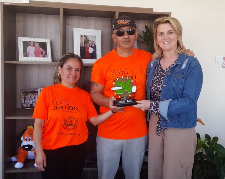 Na oportunidade, Alcemar Santos apresentou o troféu conquistado e também agradeceu o apoio da Administração Municipal em suas competições. Cleura Minetto parabenizou o atleta pela conquista e pelo grande exemplo que é, pois, além de levar o nome de Sobradinho a muitos lugares, ainda é sinônimo de garra, confiança e superação. Neste mês de outubro, Alcemar vai participar de uma série de competições: no próximo domingo, dia 08, estará em Santa Maria e no feriado, dia 12, em Santa Cruz do Sul. Essas duas competições fazem parte do Circuito Sesc. Já no dia 15 de outubro, ele participa da Meia Maratona Internacional de Uruguaiana, e no dia 29, da Meia Maratona de Alegrete. Alcemar Santos faz parte do Projeto Sexto Sentido de Porto Alegre.