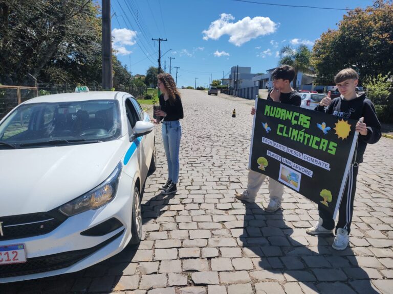 A Turma 101 do Ensino Médio da Escola Estadual José Luchese, de Lagoa Bonita do Sul, promoveu um Pedágio de Conscientização sobre as Mudanças Climáticas, em alusão ao Dia Mundial da Árvore (21 de setembro).