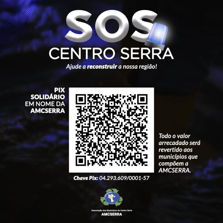 A Associação dos Municípios do Centro Serra (AMCSERRA) criou o Pix Solidário, uma iniciativa destinada a arrecadar fundos para apoiar os municípios do Centro Serra que foram gravemente afetados pela enchente recente. As doações recebidas serão fundamentais para a recuperação das áreas atingidas, permitindo que as comunidades locais recebam a assistência necessária.