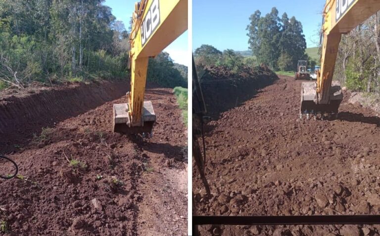 A Secretaria Municipal da Agricultura, Obras, Viação e Meio Ambiente está promovendo uma rotina de reparos, limpeza, britagem e alargamento de estradas na Travessa dos Eichelberger, que direciona à localidade de Tamanduá/Segredo.