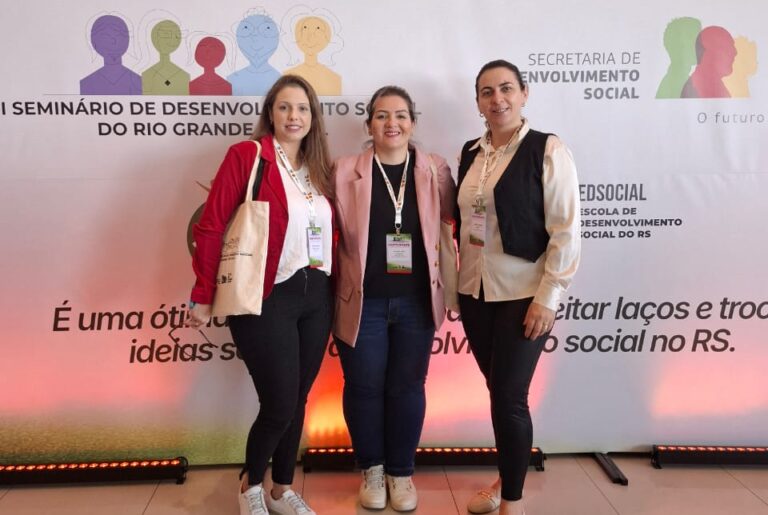 A secretária de Assistência Social do município, Aline Cristina Schanne, junto com as assistentes sociais Fabiana Rocha Vandes e Valéria Silveira da Maia, participou do II Seminário de Desenvolvimento Social do Rio Grande do Sul. O evento ocorreu em Restinga Sêca, reunindo representantes de diversas cidades do estado, além de especialistas e agentes públicos.