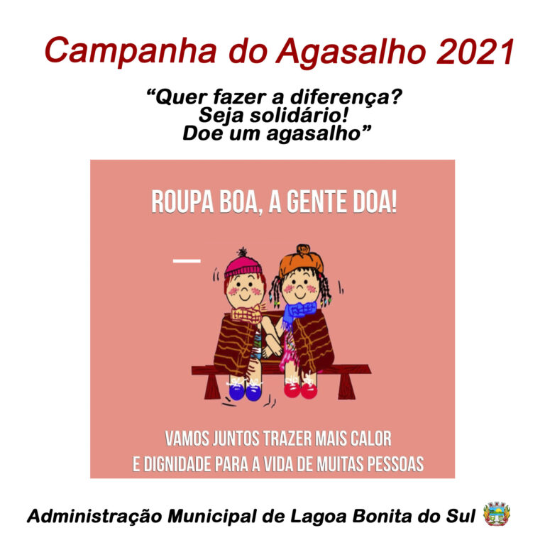 A Secretaria Municipal da Assistência e Inclusão Social, juntamente com o CRAS Acreditando no Futuro, promove a Campanha do Agasalho 2021, que tem como slogan, “Quer Fazer a diferença? Seja solidário! Doe agasalho!”. Esse ano o município recebeu uma grande quantidade de agasalhos doados pela população do Município, Defesa Civil do Estado e do Movimento Assistencial Barbosense, de Carlos Barbosa. Todas famílias inscritas, já foram atendidas, porém, ainda restaram algumas peças.
