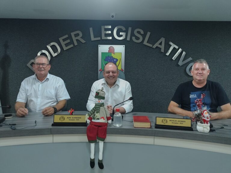 A Câmara Municipal de Vereadores de Arroio do Tigre reuniu os parlamentares da atual legislatura para a última sessão ordinária do ano. Além da apreciação de quatro Projetos de Lei, foi eleita a nova mesa diretora para 2022. Auri Schneider (PDT) vai comandar a casa legislativa no próximo ano, tendo como vice-presidente Gilberto Abel Schäfer (PP) e secretário Moacir Eichner (PDT). Os votos foram proferidos de forma verbal.