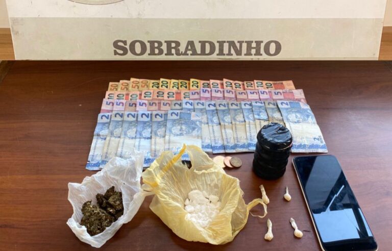 Durante a revista pessoal, os policiais encontraram com ele uma quantia em dinheiro e quatro buchas de crack. No interior da residência onde ocorria o tráfico, foram localizados 19,6 gramas de cocaína e 19 gramas de maconha.