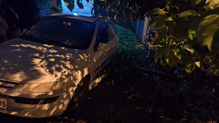 A Brigada Militar de Sobradinho foi acionada para atender a uma ocorrência de acidente de trânsito por volta das 23h desta sexta-feira (14), na Rua José Maraschim, no Bairro Baixada. Ao chegar ao local, os policiais constataram que o condutor de um Celta, com placas de Sobradinho, havia perdido o controle do carro e invadido o pátio de uma residência. Segundo informações, o motorista tentou realizar um retorno na rua sem saída, mas acabou se desorientando e colidindo contra o muro e o portão da casa.