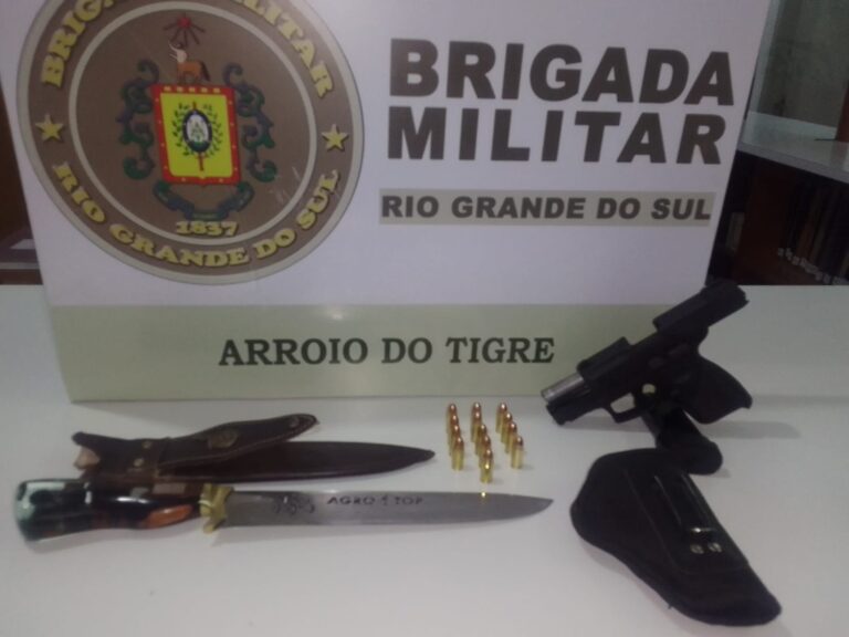 A Brigada Militar prendeu volta das 21h deste domingo, 18, uma mulher de 26 anos por Porte Ilegal de arma de fogo. A guarnição recebeu denúncia sobre desordem no Parque de Eventos Prefeito Atílio Pasa. Chegando ao local, os policiais encontraram o veículo informado na denúncia, bem como seu proprietário, que estava acompanhado de sua namorada e de outros dois homens. A mulher estava no interior do veículo, quando foi solicitado para que saísse. Ela acatou as ordens dos policiais, apanhou sua bolsa e desceu do veículo.
