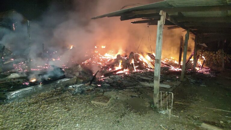 Já no começo da madrugada desta quarta-feira (22), os Bombeiros Voluntários de Candelária, foram acionados para atender um incêndio num galpão na localidade de Alto Passa Sete, interior do município. O local era utilizado como depósito, e armazenava diversas ferramentas e equipamentos, incluindo pulverizadores costais, motosserra, roçadeira, além de itens como um freezer, bicicleta, milho, adubo e outros materiais. Para conter as chamas, a equipe deslocou duas viaturas e mobilizou cinco bombeiros. Foram necessários cerca de 5 mil litros de água para extinguir o fogo. Ninguém se feriu.