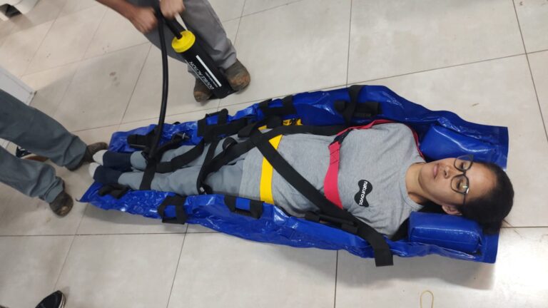 Alças acopladas também permitem a remoção da vítima. Junior Fardin, presidente da entidade, destaca que o equipamento é versátil, podendo ser utilizado tanto para imobilizar quanto para transportar vítimas em posição deitada ou sentada. Ele expressa sua gratidão à 1ª Vara Judicial da Comarca pela conquista do equipamento.
