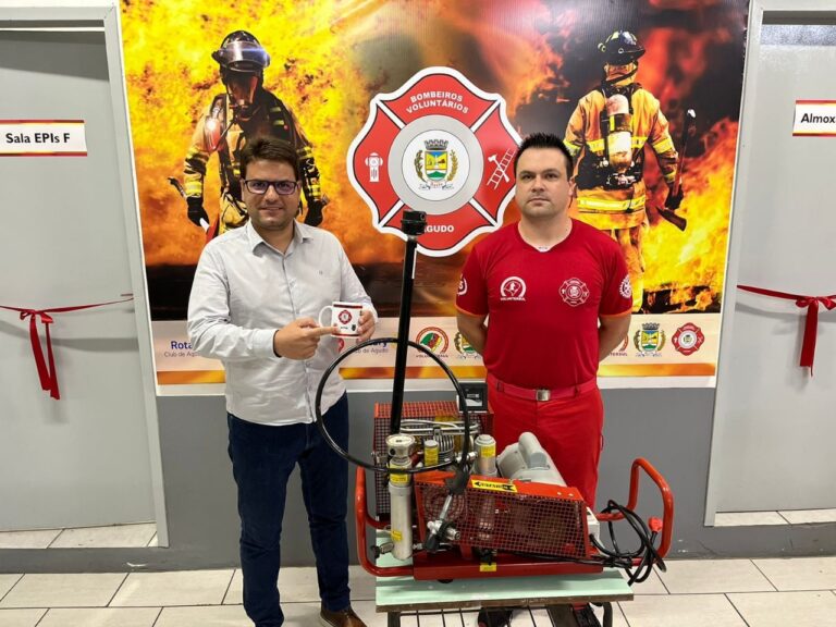 Ainda na ocasião, o Prefeito Luiz Kittel também fez a entrega oficial de um Compressor de Ar de fabricação Italiana aos Bombeiros para utilização no enchimento dos Equipamentos de Proteção Respiratória.