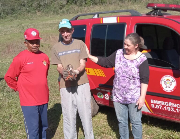 Os Bombeiros Voluntários de Sobradinho foram acionados na tarde desta segunda-feira, 1°, para resgatar um filhote de Jaguatirica. O animal selvagem estava na propriedade de um morador de Botucaraí, interior do município de Passa Sete. Ele relatou aos bombeiros que no último sábado, 30, estava fazendo a limpeza de uma lavoura, quando encontrou o filhote.