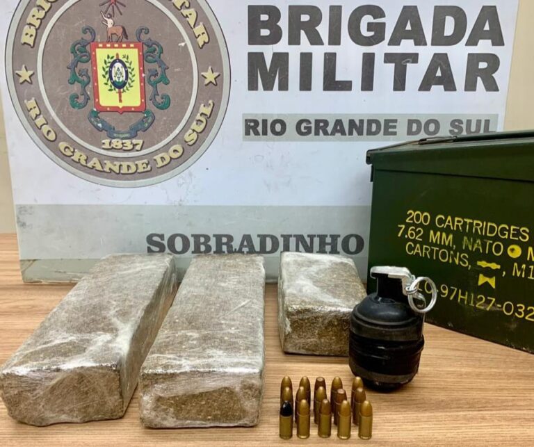 A Brigada Militar fez uma apreensão inédita em Sobradinho no final da tarde desta segunda-feira, 16. Uma granada foi localizada dentro de uma caixa com munições que estava em poder de um jovem de 18 anos no Bairro Maieron. A ação da Brigada Militar teve início no Bairro União, onde um homem foi preso em flagrante por tráfico de drogas. Após ser preso, ele revelou que guardava mais entorpecentes numa casa no Bairro Maieron.