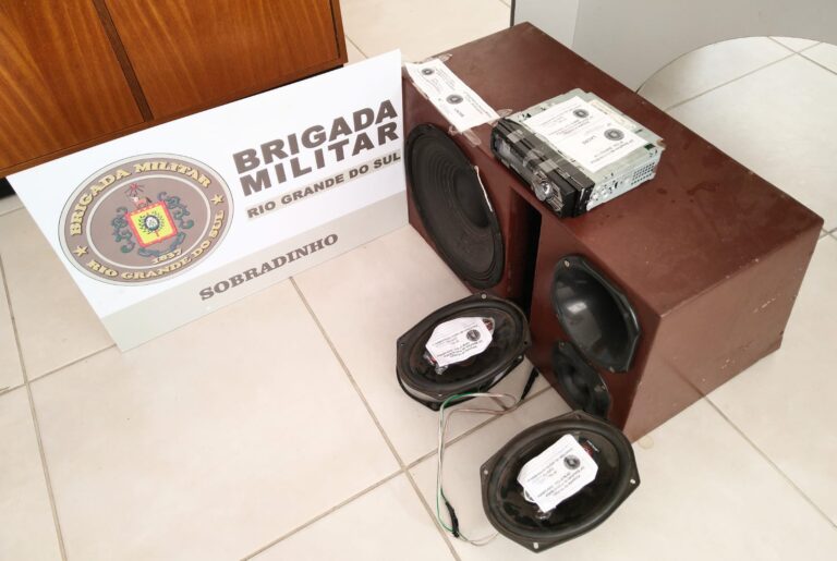 A Brigada Militar de Sobradinho apreendeu na madrugada desta terça-feira (02), um som automotivo. Um Gol transitava pela Avenida João Antônio com o som em alto volume, causando perturbação ao sossego público, o que gerou reclamações de vários moradores do centro. Os policiais militares confeccionaram um termo circunstanciado ao responsável pela contravenção penal de perturbação do sossego alheio.
