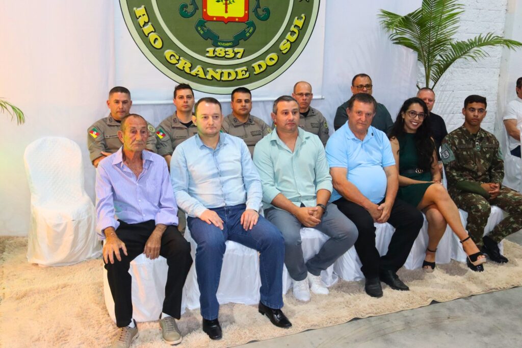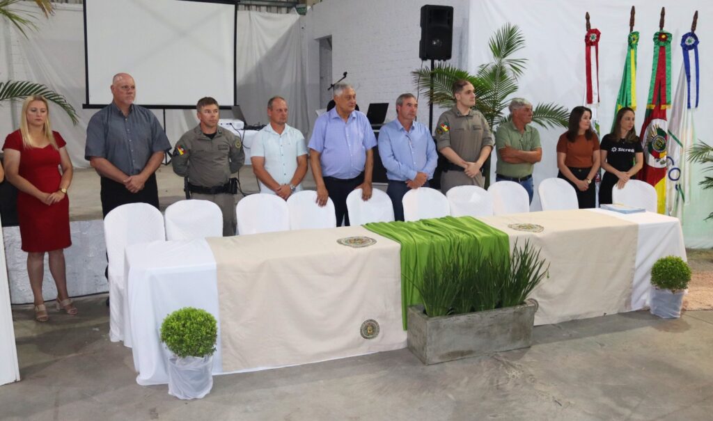 O evento reuniu autoridades locais e regionais, entre elas o prefeito Luizinho Fagundes, o deputado estadual Adolfo Brito, o presidente da Câmara de Vereadores Gilsemar Honnef, o comandante da 2ª Companhia da BM do Centro Serra, capitão Charles Sonnenstrahl Filho, e o comandante local da Brigada Militar, soldado Edson Beling.