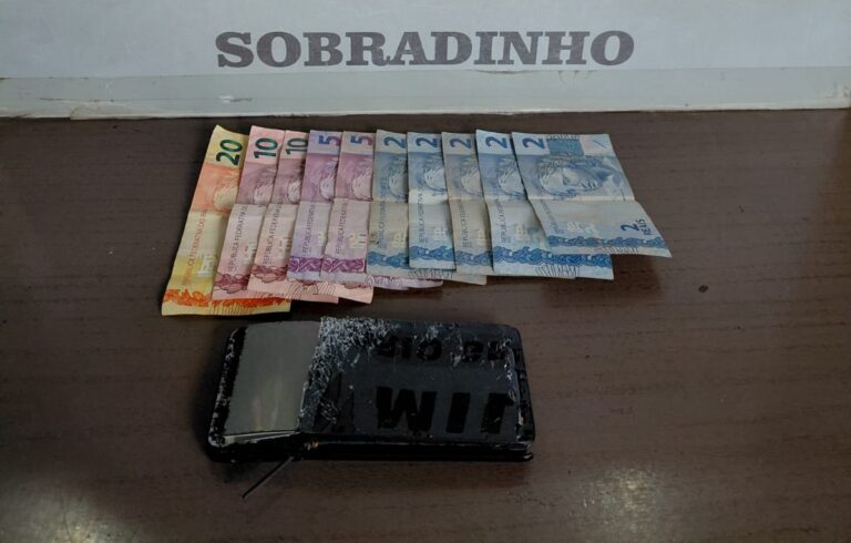 Questionado sobre a origem do dinheiro, o homem não conseguiu apresentar uma explicação plausível. Diante da situação, a guarnição procedeu com a apreensão do aparelho celular danificado e do dinheiro.