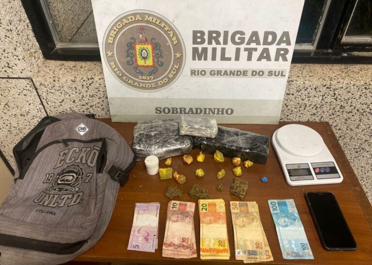 Ao todo, foram apreendidos um veículo Fiat Uno; uma balança de precisão; 268 gramas de cocaína; 776 gramas de maconha; 829 gramas de crack; dois aparelhos celulares, e R$ 1.610,00 em dinheiro. Os dois homens foram conduzidos à Delegacia de Polícia para o registro da ocorrência. Os materiais foram apreendidos. Os dois homens, após o registro, foram liberados. A ação reforça o trabalho contínuo da Brigada Militar no combate ao tráfico de drogas e à criminalidade em Sobradinho e região.