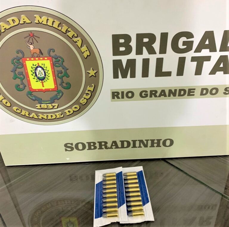 Na noite dessa quinta-feira (28), a Brigada Militar de Sobradinho apreendeu 20 cartuchos intactos de munição de calibre .32, durante uma abordagem na Rua Bacharel Luiz Carniel, no Bairro União. Os policiais militares suspeitaram de um homem no local, o revistaram e encontraram as munições no bolso.
