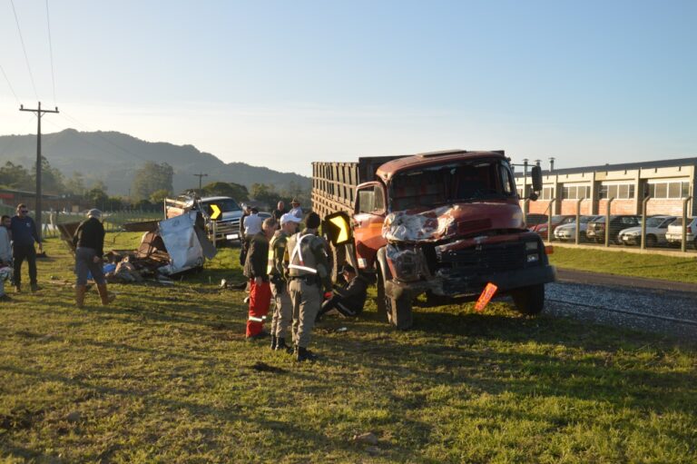 Com o impacto, o caminhão teve o para-brisa quebrado e danos na parte frontal. Estavam no veículo o motorista, de 51 anos e o passageiro, de 39 anos, que sofreu ferimentos e apresentava suspeita de fratura na perna direita. O homem foi socorrido pelo SAMU e encaminhado para atendimento médico no Hospital Candelária. O cavalo que estava sendo transportado no reboque não resistiu ao impacto e morreu no local. Os ocupantes da camionete não se feriram.