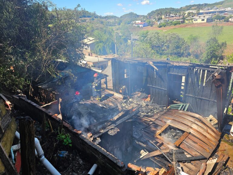 No final da manhã desta terça-feira (23), por volta das 10h45, um incêndio destruiu completamente uma casa de madeira no Bairro Rutzen, em Arroio do Tigre. No momento do sinistro, ninguém estava na residência, que era habitada por um casal e seus filhos.