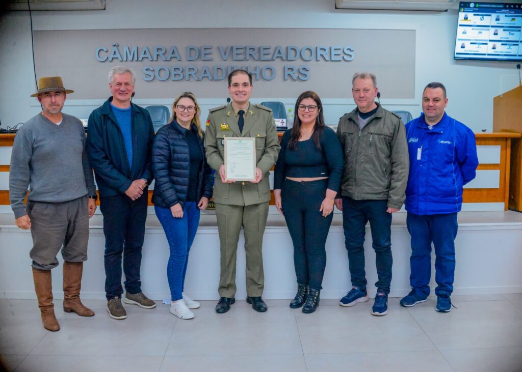 A sessão foi marcada ainda pela entrega do Título de Cidadão Sobradinhense ao Capitão Charles Sonnenstrahl Filho, comandante da 2ª Companhia da Brigada Militar do Centro Serra. A honraria foi aprovada pela Câmara a partir de proposição dos vereadores Jairo Hermes (PDT), Cátia Dalmolin (PP) e Jonas Horbach (PT).