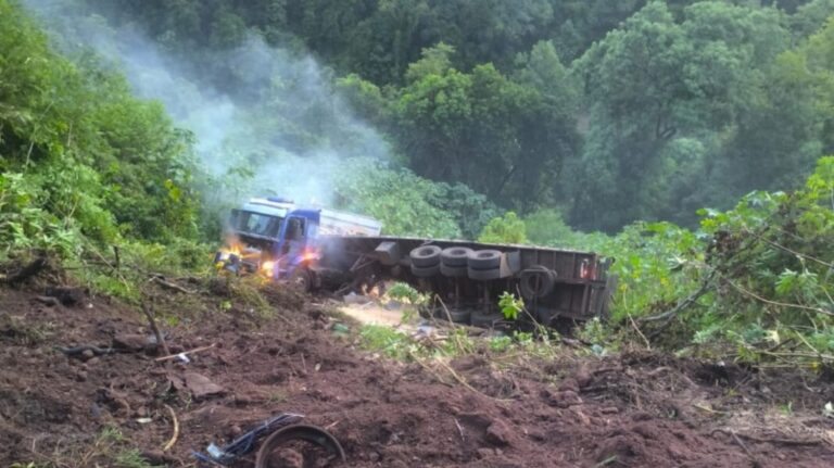 Um novo acidente ocorreu na noite de sábado (15), na chamada Curva das Almas, no km 13 da ERS-400, na serra de Candelária, em Picada Karnopp. Uma carreta saiu da pista e caiu na ribanceira. Os Bombeiros Voluntários foram até o local e não encontraram o motorista do caminhão.