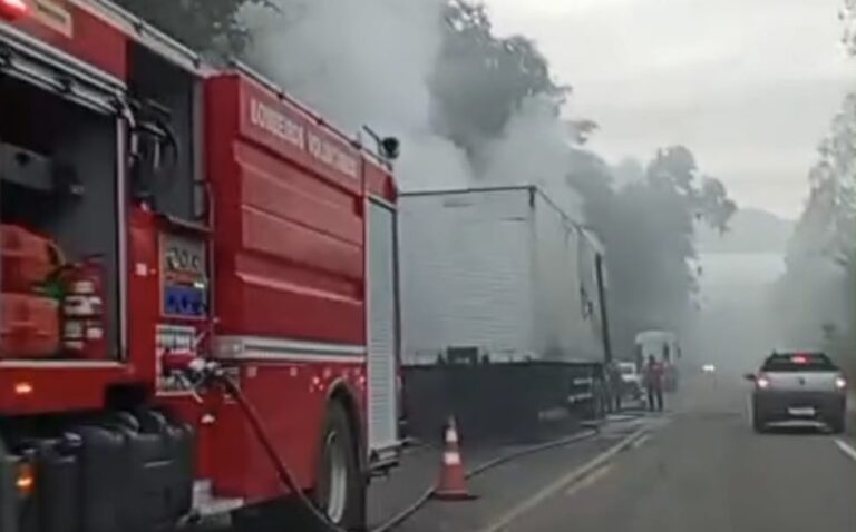 Uma carreta pegou fogo na madrugada desta sexta-feira, 09, na ERS 400, entre Candelária e Passa Sete. O veículo trafegava na altura do KM 13, próximo a chamada curva dos Knak. Os Bombeiros Voluntários de Candelária foram acionados e combateram as chamas que atingiram a carroceria do tipo baú. O motorista conseguiu desengatar o cavalinho do veículo e, assim, evitou que fosse atingido pelo incêndio. O trânsito não chegou a ser interrompido.