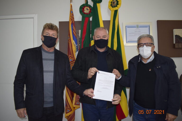 O prefeito Armando Mayerhofer, recebeu nesta segunda-feira (05), o assessor do Deputado Federal Giovani Cherini (PL), Pedro Paulo Nenê Nunes, e o ex-vereador e representante do PL no município, Tuki Siman. Na oportunidade, eles entregaram uma emenda parlamentar no valor de R$100.000,00 para custeio na área da saúde. Mayherhofer destacou mais uma vez importância de todos os partidos estarem empenhados na busca de recursos para o município.