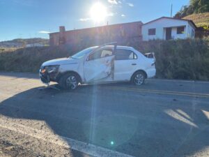 Condutor perdeu o controle do veículo e se chocou contra barranco