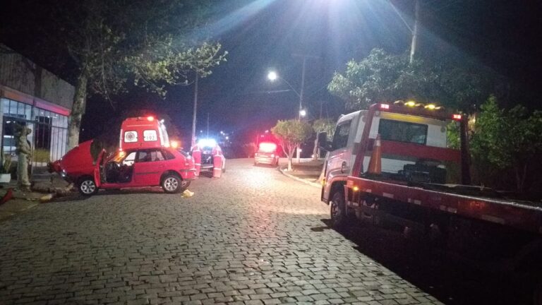 Um acidente de trânsito deixou duas pessoas feridas, na noite deste domingo, 18, na Rua Castelo Branco, no centro de Arroio do Tigre. Por volta das 23 horas, o condutor de um VW Gol, de cor vermelha, colidiu com uma árvore em frente a uma revenda de automóveis. De acordo com informações obtidas através da Brigada Militar, os dois ocupantes do veículo ficaram feridos. Uma das vítimas ficou presa às ferragens e precisou ser retirada pelos Bombeiros Voluntários do município com auxílio de um desencarcerador, recém adquirido pela corporação.